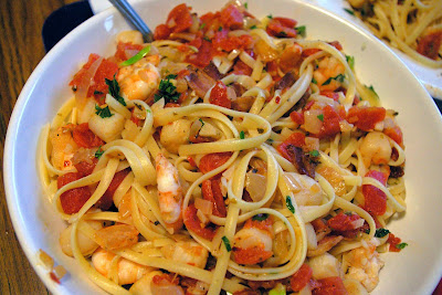 I needed something that can come in a flash. And what could be more convenience that pasta! (no, instant noodle doesn't count, although we will eat it when we need something in a blink) In the spirit of trying something new, I opted for the Shrimp and Scallop Arrabbiata.